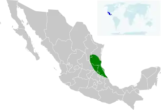 La Paruline à couronne jaune est endémique du Mexique. On la trouve dans une aire restreinte le long de la côte est dans les états de San Luis Potosí, de Veracruz et de Tamaulipas.