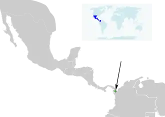 Son aire fragmentée s'étend d'une part à travers la Serranía del Darién et la Serranía de Pirre de l'autre.