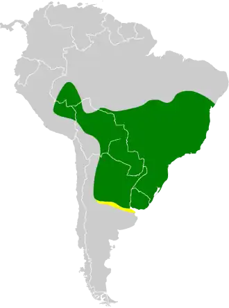 Cette espèce se trouve au Pérou, en Bolivie, au Brésil, au Paraguay, en Uruguay et en Argentine.