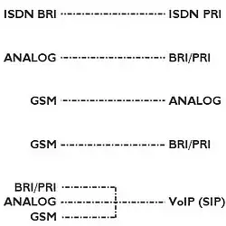 - Pour convertir les lignes RNIS et analogiques entrantes en VoIP : dans ce cas, la passerelle permet de passer et de recevoir des appels vers des abonnés du réseau téléphonique commuté.