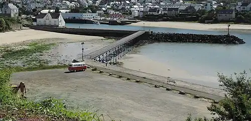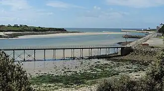 La passerelle des Capucins et le chenal du port d'Audierne à marée basse. | ||||