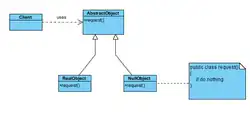 Il ne s'agit pas d'un patron venant du livre Design Patterns, mais il est mentionné dans le livre Refactoring[2] de Martin Fowler et dans Insert Null Object Refactoring de Joshua Kerievsky qui traite de réingénierie logicielle.