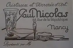 Paul Nicolas est issu de l'École de Nancy. Élève d'Émile Gallé, dont il rejoint l'entreprise en 1893, il crée en 1919 sa propre entreprise avec le soutien des Cristalleries de Saint-Louis.