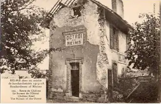 Le premier bâtiment de deux niveaux, sur la droite de la photo, est le bâtiment qui servait d’octroi puis devint un commissariat de police. Gravement endommagé pendant la Grande Guerre, il n’a pas été reconstruit[3].