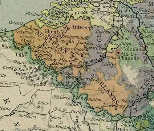 Par le traité d'Utrecht en 1713, les Pays-Bas du Sud deviennent autrichiens par transmission familiale des Habsbourg de Madrid à ceux de Vienne, selon les règles du droit féodal encore en vigueur à l'époque. Dès lors, les Pays-Bas du Sud s'appelèrent Pays-Bas autrichiens ou Belgium Austriacum ou encore Austrian Netherlands.
