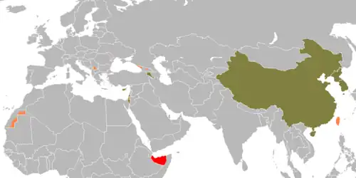 - La république de Chine (souvent appelée Taïwan) bénéficie d'une indépendance de facto mais n'est pas reconnue par la république populaire de Chine et la plupart des États de la communauté internationale qui ont peu à peu reconnu la « politique d'une seule Chine » voulue par la république populaire de Chine. Elle entretient des relations diplomatiques officielles avec 12 États.