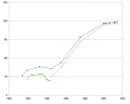 - La république populaire de Chine (RPC), proclamée en 1949, n'est pas reconnue par la république de Chine (RDC), État non membre de l'ONU[8].