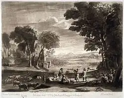 Claude Lorrain est un peintre français établi en Italie. Appartenant à la période de l’art baroque, il s’inscrit dans le courant du classicisme français, dans lequel il excelle dans la peinture de paysage. Dans son œuvre, il reflète un nouveau concept dans l’élaboration du paysage en se basant sur des références classiques, le « paysage idéal », qui met en évidence une conception idéale de la nature et du monde intérieur de l’artiste. Cette façon de traiter le paysage lui donne un caractère plus élaboré et intellectuel et devient l’objet principal de la création de l’artiste, de la mise en forme de sa conception du monde, de son interprétation de sa poésie, qui évoque un espace idéal et parfait[1].