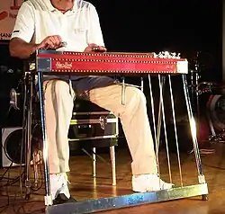 - ↑ Tous les détails de technologie de la pedal steel guitar sont exposés dans le site pedalsteelguitarfrance.