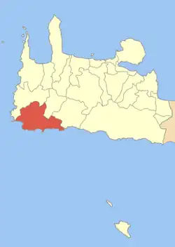 Il était situé dans le sud et à l'ouest de la préfecture de La Canée et basé dans le village de Paleóchora. Selon le recensement de 2001 l'ancien dème avait un total de 4 259 habitants et une superficie de 166 678 hectares.