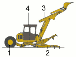 3 : flèche avec balancier télescopique et rétrocaveuse ;
