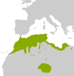 Cette espèce se rencontre du niveau de la mer jusqu'à 2 670 m d'altitude en Afrique du Nord[2] :