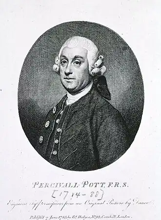 - ↑ Pott, P., 1775: Chirurgical Observations (Londres, Hawes, Clarke and Collins)