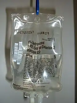 Le système de la pochette de liquide d'infusion a été mis au point et breveté par le médecin américain Donald E. Baxter, à son retour de Chine en 1931. Ce système est parfois désigné « baxter » en référence à son créateur.