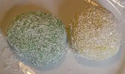Généralement de couleur blanche, les perles de coco peuvent aussi être faites, surtout dans la péninsule indochinoise, avec de l'essence de pandan et prendre une couleur verte.