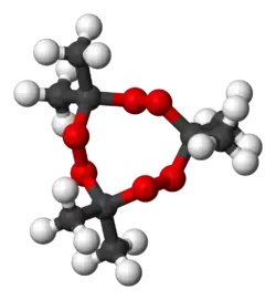Le peroxyde d'acétone est un explosif primaire découvert en 1895 par Richard Wolffenstein[3]. C'est une famille de molécules instables constituées de peroxydes organiques cycliques, notamment sous la forme d'un dimère ou d'un trimère. Le produit connu sous le nom de peroxyde d'acétone contient majoritairement la forme trimère : le triperoxyde de triacétone, d'où le nom TATP (en anglais : triacetone triperoxide) ou TCAP (en anglais : tricyclicacetonperoxide).