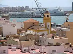Vue de l'église de San Roque et le Port d'Almería au fond.