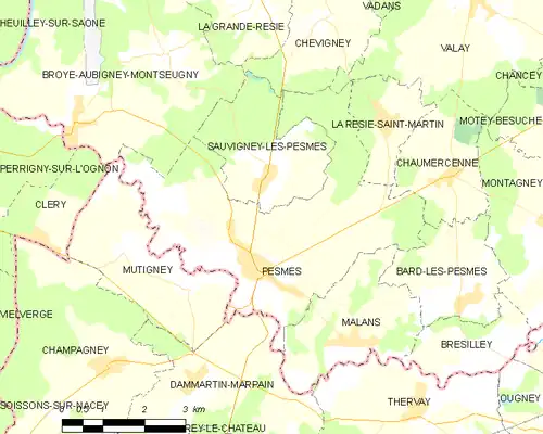 Carte de la commune de Pesmes et des proches communes.