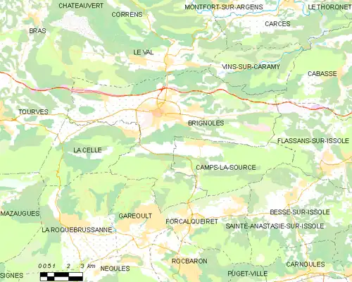 Un autre exemple remarquable, donné par J.N Biraben, est l'évitement réussi de Brignoles. Cette ville se situe sur l'axe de la peste de Marseille vers Saint-Raphaël (en partie sur le trajet de la nationale 7), elle se ferme comme les autres, mais en plus elle dispose sur la grand-route d'un village voisin sévèrement gardé Tourves[16], situé sur un croisement vers Marseille et Saint-Maximin. La peste contourne Brignoles, en empruntant une route secondaire, touchant Nans, La Roquebrussanne, Garéoult, pour rejoindre la route principale à Flassans.