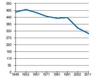 - 1 2 (sr + en) « Livre 20 : Vue d'ensemble comparative de la population en 1948, 1953, 1961, 1971, 1981, 1991, 2002 et 2011, données par localités) » [PDF], pages du recensement de 2011 en Serbie - Institut de statistique de la république de Serbie, (consulté le )