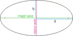 La longueur du petit axe est couramment notée 2b, celle du demi-petit axe, b.