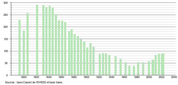 - ↑ Population municipale de référence en vigueur au 1er janvier 2025, millésimée 2022, définie dans les limites territoriales en vigueur au 1er janvier 2024, date de référence statistique : 1er janvier 2022.