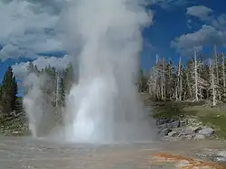 Les geysers sont des émanations d'eau surchauffée qui jaillissent généralement par intermittence. Lorsque des gaz remontent par la nappe phréatique surchauffée, elle exerce une pression sur le conduit extérieur qui empêche l'eau de la nappe de bouillir. Lorsque les conditions d'ébullition explosives le permettent (BLEVE), l'eau et la vapeur jaillissent brutalement par le conduit de la cheminée de l'édifice et créent une large colonne d'eau et de vapeur qui peut jaillir pendant plusieurs minutes.On parle d'instabilité geyser qui provoque le phénomène.