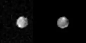 Mosaïque de deux images de Phœbé prises par la sonde Cassini lors de son approche le 11 juin 2004 | |