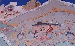 - ↑ le mythe est attesté dans l'œuvre Maṇi bka' 'bum, attribuée au souverain Songtsen Gampo.