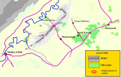 La Phalange va être engagée, du au soir au , au sud de la rivière Medjerda, dans le secteur de la ferme Klioua situé à 5–10 km au nord-est de Medjez-el-Bab et à environ 40 km à l’ouest de Tunis.