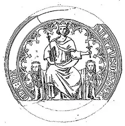 Par la suite, Philippe concentre essentiellement sa politique extérieure vers ses voisins ibériques[40]. Un traité de paix est signé à Salamanque le avec la Castille[41]. Il entame par ailleurs des négociations autour des fiançailles de sa fille aînée Jeanne avec Pierre, héritier du trône d'Aragon, dès 1329[42]. Pierre IV épouse finalement Marie, sœur cadette de Jeanne, qu'il préfère. Pour permettre ce mariage, Jeanne se fait religieuse à l'abbaye de Longchamp en 1337 à l'âge d'onze ans et renonce l'année suivante à ses droits sur le royaume de Navarre au profit de sa sœur. Elle reçoit en dédommagement une rente de 1000 livres, assise sur la seigneurie de Mantes[43].