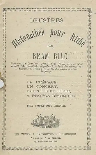 Il écrivait en jersiais sous le nom de Bram Bilo dans la Nouvelle Chronique de Jersey ainsi qu’en français sous le nom de Samuel dans la Chronique de Jersey des séries d’articles relatant les aventures de personnages typiquement jersiais, tout d’abord des campagnards puis, à partir de 1911, des Jersiais naïfs en ville face à l’anglicisation croissante de la société. Ses sujets montrent un auteur qui avait bien assimilé la condition humaine avec toutes ses affectations, ses fautes et ses comédies dans la vie des familles[1].