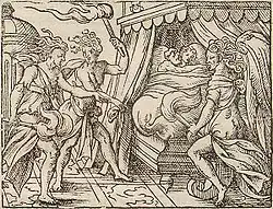Térée et Procné entourés par les Furies, illustration de Virgil Solis pour le livre VI des Métamorphoses d'Ovide, 1562.