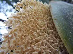 Les fruits sont de toutes petites dattes comestibles [3] de 1 cm de longueur, renfermant une graine minuscule de la taille d'un grain d'avoine.