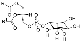 Cette molécule est composée d'un acide phosphatidique (deux acides gras estérifiant une molécule de glycérol, elle-même liée de façon covalente à un acide phosphorique) dont le groupement phosphate est associée à une molécule de myo-inositol, un polyol cyclique :