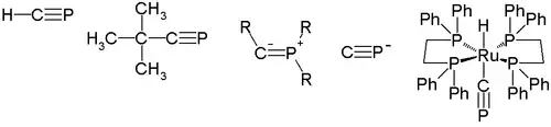 Il y a deux types de phosphoalcynes. L'un est plus lourd que la nitrile (R-C≡N). L'autre possède cinq liaisons de valence du phosphore, cette molécule peut aussi être décrite comme un ylure de phosphore ou un phosphanocarbène. En 2010, le complément phosphorique du isonitriles R-P+≡C− appelé isophosphoalcynes n'a pas encore été observé.