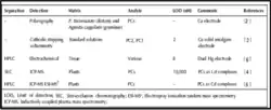 Plusieurs techniques analytiques permettent la détermination des phytochélatines (Cf. tableau ci-dessous). Le choix de la méthode varie selon la « matrice ».