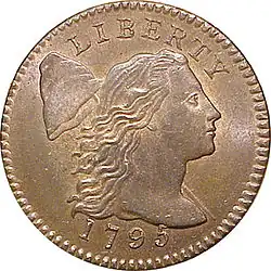 La première pièce de 1 cent apparaît officiellement au millésime de 1793. Valant 1/100 de dollar, d'un diamètre de 26,5 mm elle pèse 13,48 g et ne contient que du cuivre. Elle est donc plus grande que le cent actuellement en circulation. La loi monétaire de 1792 permit également la frappe de pièce d'une valeur d'un demi cent jusqu'en 1857.