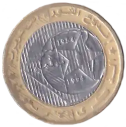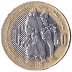 La pièce de 2004 est une série limitée de la banque d'Algérie qui a émis que trois millions de la pièce[4]. Elle est créée à l'occasion du 40e anniversaire du 1er novembre 1954.