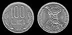 29 mm | 8,75 g | acier plaqué nickel | le buste de Mihai Viteazul, son nom Mihai Viteazul et la mention ROMANIA | la valeur faciale 100 LEI et le millésime | 1991 | |