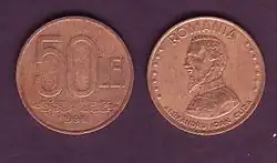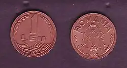 - ↑ la pièce de 1 leu 1992 porte l'insigne de la Banca Națională a României (Banque Nationale de Roumanie)