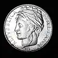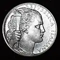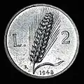 | Avers : L'inscription « repvbblica italiana » et Italia turrita (figure allégorique féminine personnifiant l'Italie) | Revers : Mouette, épi de maïs, dauphin, rameau d'olivier, valeur faciale et l'année | ||||