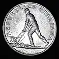 | Avers : L'inscription « repvbblica • italiana » et un paysan avec charrue | Revers : Épi de maïs, valeur et année | ||||