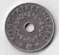 | 5 couronnes | 26,0 mm | 7,85 g | le monogramme royal couronné, la mention KONGERIKET NOREG | ![]() |