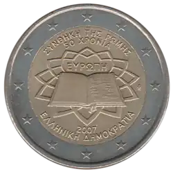 Tous les pays de la zone euro, dont la Grèce, ont émis le 25 mars 2007 une pièce commémorative de 2  pour célébrer le 50e anniversaire du traité de Rome.