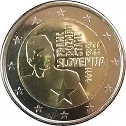 - ↑ JO C 57/27 du 23/02/2011 : Slovénie 2011 (Centenaire de la naissance du héros national Franc Rozman-Stane).