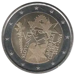 - ↑ JO C 62/08 du 04/03/2014 : Slovénie 2014 (600e anniversaire du couronnement de Barbara de Celje).