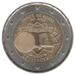 Tous les pays de la zone euro, dont le Luxembourg, ont émis le 25 mars 2007 une pièce commémorative de 2 € pour célébrer le 50eanniversaire du traité de Rome.