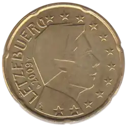 Comme le veut l'article 39 de la Constitution du Luxembourg, c'est le grand-duc qui a le pouvoir de battre la monnaie. Le grand-duc Jean a choisi de faire représenter son héritier, Henri, sur les pièces en euro[2]. Celui-ci deviendra grand-duc, en 2000, avant l'introduction des pièces en euro. La loi luxembourgeoise exige en effet que toutes les pièces de monnaie luxembourgeoises portent l'effigie du grand-duc régnant au moment de leur mise en circulation.