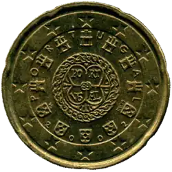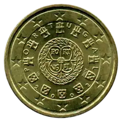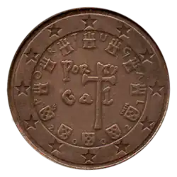 Comme toutes les pièces en euro destinées à la circulation, les pièces portugaises répondent aux spécifications techniques communes et présentent un revers commun utilisé par tous pays de la zone euro. Celui-ci indique la valeur de la pièce. Le Portugal utilise la deuxième version du revers depuis 2008[1].